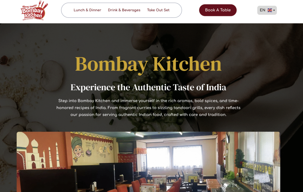 Bombay Kitchen is a beloved Indian restaurant in Osaka known for its rich curries, tandoori grills, and authentic flavors from North and South India. The goal was to give their growing brand a modern digital identity โ one that captures the warmth of Indian hospitality while appealing to Japanโs design-conscious audience.